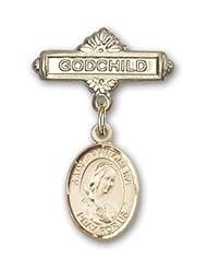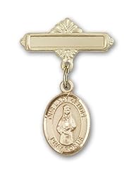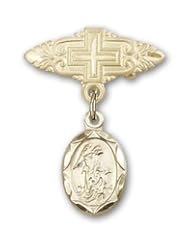 Gold Filled Baby Badge with St. Paul the Apostle Charm and Arched Polished Badge Pin