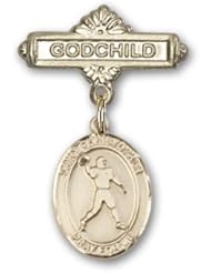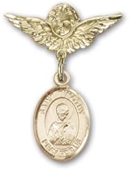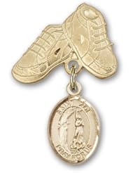 Gold Filled Baby Badge with Guardian Angel Charm and Baby Boots Pin