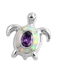 Sterling Silver White Fire Opal Amethyst CZ Turtle Pendant Charm Pure 925 18mm with 1mm Snake Chain