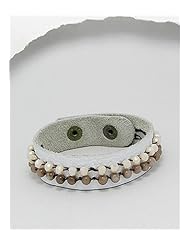 White Leather Natural Stone Bracelet In White Base