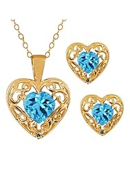 2.15 Ct Heart Shape Swiss Blue Topaz Gold Plated Silver Pendant Earrings Set