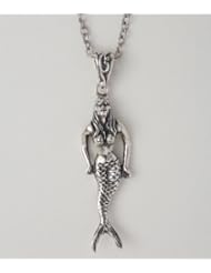 Surfacing Mermaid Necklace Sterling Silver 3D on 18 Inch Stainless Steel Link Chain