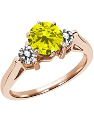 Best Women's Jewelry 0.68 Ct Round Canary SI1/SI2 Diamond 14K Rose Gold 3-Stone Ring For Sale See product for more details & Check Latest Price