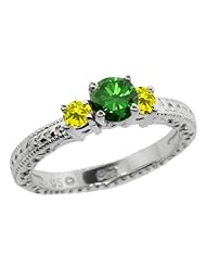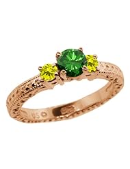 Best Women's Jewelry 0.79 Ct Round Green and G/H Diamond 14K Rose Gold 3-Stone Ring For Sale See product for more details & Check Latest Price
