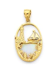 14k Gold Created Opal Lighthouse & Sailboat Pendant