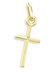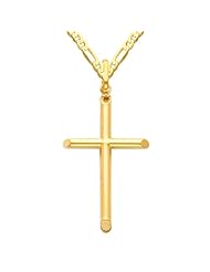 14K Yellow Gold Classic Cross Charm Pendant with Yellow Gold 2.3mm Figaro Chain Necklace with Lobster Claw Clasp - Pendant Necklace Combination (Different Chain Lengths Available)