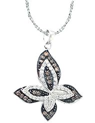 Sterling Silver Cognac-brown & Natural White Diamond Butterfly Bug Womens Ladies Unique Fashion Pendant with 18" Chain - .75 (3/4) Ct.t.w.