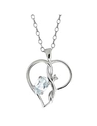 0.44 Ct Oval Sky Blue Aquamarine White Topaz 925 Sterling Silver Pendant 18"