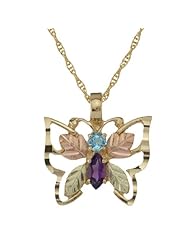 Black Hills Gold Amethyst and Blue Zircon Sterling Silver Butterfly Necklace