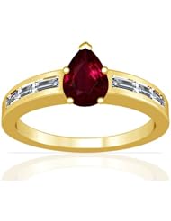 18K Yellow Gold Pear Cut Ruby Ring With Sidestones