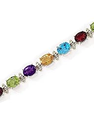14kt Yellow Gold Oval Multi Color and Diamond Bracelet